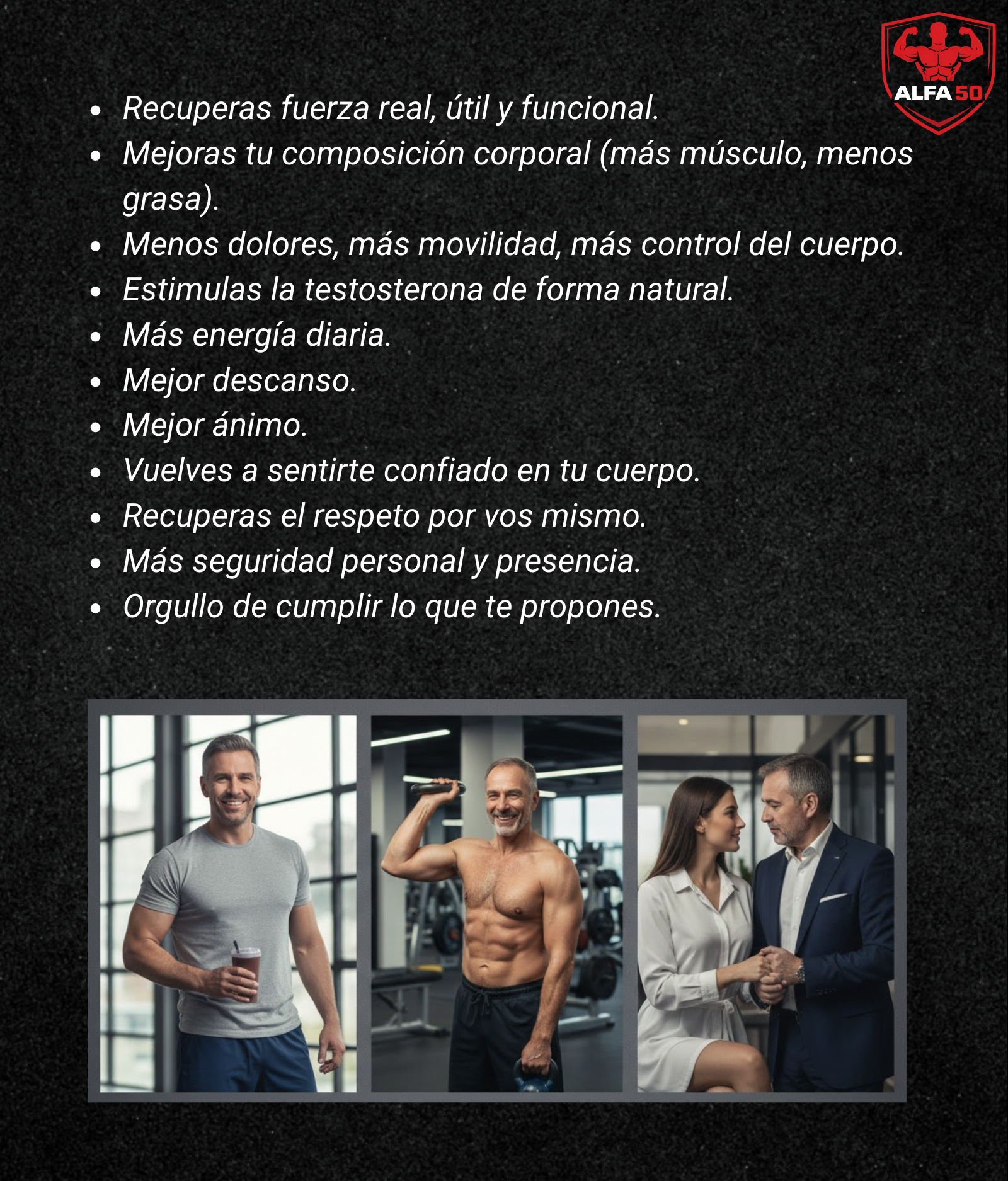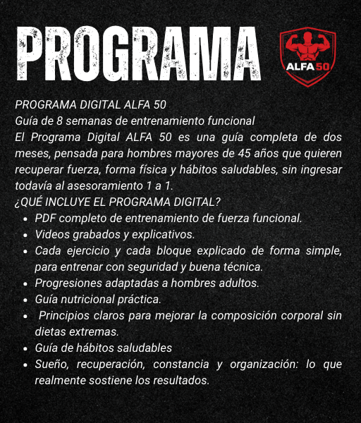 Con el enfoque correcto, entrenar después de los 45 no solo es posible, es más inteligente: menos ego, más criterio y mejores decisiones. ALFA 50 está diseñado exactamente para esta etapa de la vida.